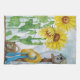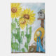 Peinture originale à l'aquarelle de Sandra Gale, avec un groupe de tournesols et un sac de jardinier, casquette et pelle. Grand design pour les jardiniers de tous types et une image parfaite de l'été!