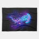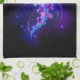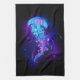 Grande méduse bleue, artistiquement dessinée, brillante, brillante, avec de longues tentacules sur arrière - plan noir avec bioluminescence violette. Méduse brillante.