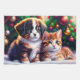 Linge De Cuisine Joli chiot et chat sous l'arbre de Noël
