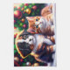 Cette mignonne serviette de cuisine a été conçue pour les vacances. Le design montre un mignon chiot et un chaton sous le sapin de Noël en vintage style. C'est un beau petit cadeau pour votre famille, vos amis, vos clients. Conçu par AIbyMarion