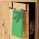 Serviette de cuisine avec l'illustration d'un joli léprechaun souriant portant un costume vert, un chapeau haut en tenant une feuille de shamrock, avec un arc-en-ciel coloré dans l'arrière - plan et un texte disant "Bonne Saint Patrick" Un design parfait pour célébrer la Saint Patrick, dessiné par Radka2D
