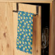 Jolie serviette de cuisine à motif rose de jardin jaune sur arrière - plan bleu turquoise. Art original d'artistes propres illustrations. Veuillez utiliser le bouton Message me ci-dessous pour obtenir de l'aide sur la personnalisation et les demandes spéciales. © Zoe Chapman Design