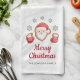 Cute familiale personnalisée Père Noël Joyeux serviette de cuisine de Noël.