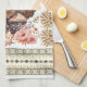 Jolie serviette de cuisine motif slave brun/or/brun. Bordure de motif de blé, corbeille d'oeufs d'or.