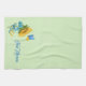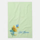 Montrez votre soutien au peuple d'Ukraine avec cette jolie serviette de cuisine avec du tournesol aquarelle et un papillon aux couleurs du drapeau d'Ukraine sur un pastel vert et blanc pois arrière - plan. Libérez le texte de l'Ukraine dans une police de script élégante