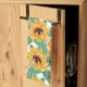 Serviette de cuisine avec un motif d'été mignon. Joli tournesol jaune entouré de feuilles verts dans un motif répétitif.