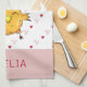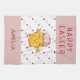 Jolie poussette de Pâques avec Coeur de Pâques Joyeux serviette de cuisine de Pâques. Joli poussin de Pâques avec coquille d'oeuf fissurée sur la tête. L'arrière - plan est un mignon motif de coeur rouge. Ajoutez votre nom.
