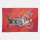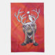 Linge De Cuisine Jolis Renne Noël sur Fond Rouge