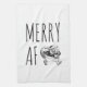 Faites savoir à tout le monde que vous êtes dans l'esprit de Noël avec cette serviette de cuisine ou de thé amusante, avec une illustration vintage en noir et blanc du Père Noël avec son sac de jouets, illustrant les mots "Joyeux AF."
