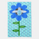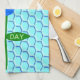 Cette superbe serviette de cuisine présente une image graphique d'un joli bourdon bleu avec des rayures bleu vif, des yeux noirs, des antennes bleues et des pattes noires. Il possède de jolies ailes bleues et blanches. L'abeille est assise au milieu d'un joli tournesol bleu. La fleur a une tige verte et trois feuilles. Le message "Bee Day boy" apparaît sur les trois feuilles. L'arrière - plan est composé d'un motif peigne bleu pâle.