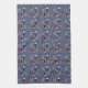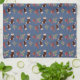 A whimsical blue kitchen towel with candy canes, birds and stockings to make Christmas fun