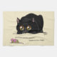 Chat noir sur le point de rebondir et de faire le "cul de chatte se balançant". Souris de jouet près du chat noir.