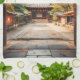 Capture the timeless elegance of Japanese heritage with this evocative digital photo art. Framed by the weathered wood of a traditional mon (gate), the viewer is invited down a sun-drenched stone path toward a magnificent temple sanctuary. Nestled among manicured pines and the soft hues of changing seasons, this piece perfectly embodies the "Wabi-sabi" aesthetic—finding beauty in the aged and the peaceful.