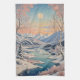 Étonnamment : La glace ne gèle pas toujours solide! De minuscules bulles d'air et des impuretés peuvent créer des motifs et des textures étonnantes à l'intérieur de la surface gelée. Ce design serein reflète la beauté paisible d'un paysage hivernal, avec un lac tranquille entouré d'arbres enneigés et de montagnes majestueuses. Le soleil couchant projette une lumière chaude sur la scène, créant une vue à couper le souffle qui évoque un sentiment de calme et d'émerveillement. Parfait pour ajouter une touche de magie hivernale à tout projet.