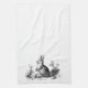 Image vintage de lapin dans le noir sur la serviette de cuisine blanche.