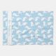 La conception de silhouette minimaliste de Destei présentant des lapins blancs dans diverses poses sur une couleur de fond bleue. Il existe également une zone de texte personnalisable pour un nom de famille, par exemple.