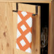 motif audacieux et géométrique de petits et grands diamants blancs sur un arrière - plan orange. L'orange vif forme un treillis qui sépare les formes diamant blanches.