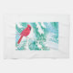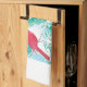 Cette serviette est conçue avec un cardinal rouge assis sur une branche enneigée d'un pin. Le cardinal est assis et regarde les flocons de neige tomber du ciel. Le sol est recouvert de neige.