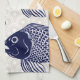 Le poisson de style japonais dirige la serviette de cuisine de motif de vagues d'illustration et de taupe.