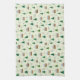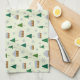 Serviette de cuisine avec motif en flocons de neige, sapins et petites maisons.