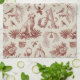 Brighten your holiday kitchen with this Christmas Golden Retriever kitchen towel! Features charming golden retrievers in Santa hats surrounded by festive holly and wreaths with letter A monogram. Absorbent, durable fabric perfect for drying dishes or decorative display. Machine washable in burgundy and cream tones.