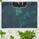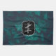 Personnalisez la serviette de cuisine à thé à main unique avec votre nom et votre initiale. Élégants feuilles de lierre vert émeraude foncé pleins d'eau goutte après la pluie.