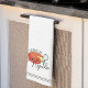 Cette amusante serviette de cuisine à chaudière à fromage présente la pièce sur les mots "Lookin' Gouda" avec un coin souriant de type kawaii de fromage gouda tenant une loupe.