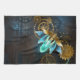 Luciole à vapeur avec ailes bleues transparentes et ampoule verte sur arrière - plan usé, marron, texturé. Style Steampunk.