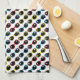 Cette serviette de cuisine est ornée d'une motif colorée composée de lunettes de soleil retro inspirées des années 70 dans les tons primaires de rouge, bleu et jaune aux accents noirs.