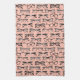Cette serviette de cuisine dispose d'une variété de différentes lunettes et lunettes de lunettes en noir et blanc sur un rose pâle.