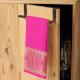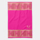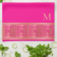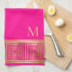 Luxueux et élégant néon rose chaud, serviette de cuisine dorée avec un monogramme personnalisable / initial.
