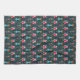 Serviette de cuisine de Noël mignonne et amusante avec l'illustration dessinée à la main du chat, du chien et de la souris comme personnages de ballet de noisette. L'arrière - plan est vert.