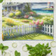 Un paysage côtier de rêve, empreint de charme aquarellé et de sérénité maritime. Une maison de bord de mer accueillante se niche parmi les sentiers de jardin luxuriants, les fleurs épanouies et une clôture blanche éclatante, créant une atmosphère chaleureuse de livre d'images. Au loin, un phare élancé s'élève à côté des vagues bleues scintillantes de l'océan, ajoutant une touche nautique classique à ce cadre côtier paisible. Des nuages floconneux dérivent à travers un ciel vibrant tandis que la lumière du soleil baigne les floraisons pastel, les pelouses vertes et les parterres de fleurs joyeux. Le style de pinceau doux donne à la scène une atmosphère fantaisiste et picturale, évocatrice de la vie côtière confortable, des jardins de cottage et des après-midi détendus au bord de la mer.