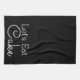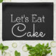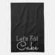 Serviette de cuisine noire moderne avec les mots "mangeons du gâteau" dans blanc.