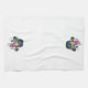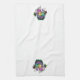 Serviette de cuisine blanche de 16" x 24" avec une image festive de Mardi Gras, aux deux extrémités, d'un coiffeur plumé, d'un masque plumé, d'un casquette à paillettes fuchsia, de perles vertes et violettes, de ballons violet, vert et or, et de deux coeurs améthystes violets. Voir la serviette en tissu assortie, la serviette en papier, le set de table en tissu, le set de table en papier et les dessous de verre. Voir toute la collection de serviettes de cuisine Mardi Gras dans le FOOD/BEV | Section Linge.