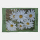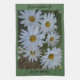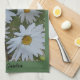 Des marguerites blanches abstraites sur une serviette de cuisine verte Le texte indique "Je préférerais être dans le jardin". Cependant, le texte est personnalisable et peut être modifié.