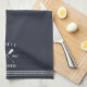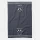 Customisez votre cuisine lake house avec cette mignonne serviette personnalisée portant votre nom de famille ou votre nom de maison et l'année établie, accentuée d'une paire d'avirons sur un arrière - plan bleu marine foncé.