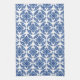 Serviette de cuisine dans un classique kimono japonais motif de médaillons stylisés à quatre sens de feuilles et de fleurs en bleu cobalt profond sur un arrière - plan blanc