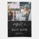Best Mom Modern Foliage 2 Custom Photos Mère serviette de cuisine. Typographie blanche tendance sur arrière - plan noir. 2 photos personnalisées complètes, texte de la meilleure maman, vos noms et un ornement simple feuillage blanc. Ajoutez vos photos et vos noms. Créez votre propre cadeau personnel pour une mère pour la Fête des Mères, l'anniversaire ou Noël.