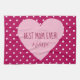 Idéal pour la fête des mères, ou l'anniversaire de maman, ce design présente des pois roses et blancs dans l'arrière - plan avec un coeur rose au milieu. Dans le coeur rose se trouve "Best Mom Ever" écrit en amusant police rose. En dessous, on customise le nom de maman en lettres cursives. Customisez les polices, ajoutez des filtres ou même une photo au design. Personnalisez votre serviette de bain dès aujourd'hui ! Oeuvre créée par : AMBillustrations http://www.etsy.com/shop/AMBillustrations/