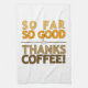 Est-ce que le café vous donne de la motivation, de l'endurance, de la confiance ? Le café est-il l'étincelle qui vous alimente toute la journée ? Pouvez-vous retracer votre succès à votre boisson préférée à la caféine? Montrez un peu d'amour à votre boisson de choix : "Jusqu'à présent si bon. Merci, café !"