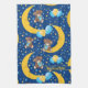 Motif bébé mignon et coloré avec un adorable dessin animé d'ours en peluche avec un ruban bleu arc assis sur une lune endormie tenant des ballons dans les étoiles jaunes et bleues et colorées, ballons colorés, étoiles, tourterelles et une étiquette de nom, avec un arrière - plan bleu foncé. L'art motif adorable pour bébé. Facile à personnaliser en changeant le nom.