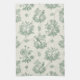 A charming mint green toile pattern kitchen towel featuring graceful birds perched among delicate flowers and ornate scrollwork. This seamless design blends classic French country elegance with natural beauty, rendered in soft green tones on a warm cream background. The intricate floral clusters, leaves, and decorative motifs evoke a sense of vintage refinement and pastoral serenity. Its timeless aesthetic makes it perfect for adding a touch of sophistication and calm to any setting.