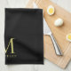 Télécharger sur mesure Ajouter votre photo ou logo Texte Élégant Cuisine et repas modernes / Table et linge de cuisine/ Nom initial Modèle personnalisé Monogramme d'or noir Serviette de cuisine.