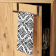 Linge De Cuisine Modèle Prima Damask noir sur blanc
