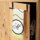 Soft butter yellow tones with sleek, black wavy lines accentuate the modern black and white centerpiece with your personalized family initial. A subtle, matching yellow drop shadow compliments the calligraphy initial in black.