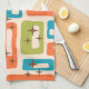 Colorée Retro Mid Century Moderne Motif Abstrait en Brown Orange Vert & Bleu.