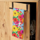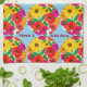 Add a burst of joy and vibrant color to your kitchen with this eye-catching kitchen towel, featuring a retro-inspired floral pattern. The design showcases cheerful yellow daisies and bold red poppies nestled within playful circles against a serene sky-blue background. This "Mom's Kitchen" towel is designed to bring a touch of dopamine decor and a sunny disposition to any cooking space. It's a perfect way to brighten up your daily routine or to gift to a mom who loves a lively and colorful kitchen aesthetic. The text, "Mom's Kitchen" is editable.