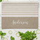 Serviette de cuisine à rayures turques rustique personnalisée avec votre nom monogramme ou autre texte. Veuillez noter que la texture de lin subtile fait partie du design imprimé et que le produit n'est pas fait de tissu de lin réel. Cliquez sur le bouton Customiser pour ajouter votre propre texte et en créer un unique de conception. La touche parfaite pour votre décor de ferme moderne !