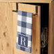 Serviette de cuisine moderne et rustique sur mesure avec monogramme personnalisé sur motif à chevalet bleu marine.